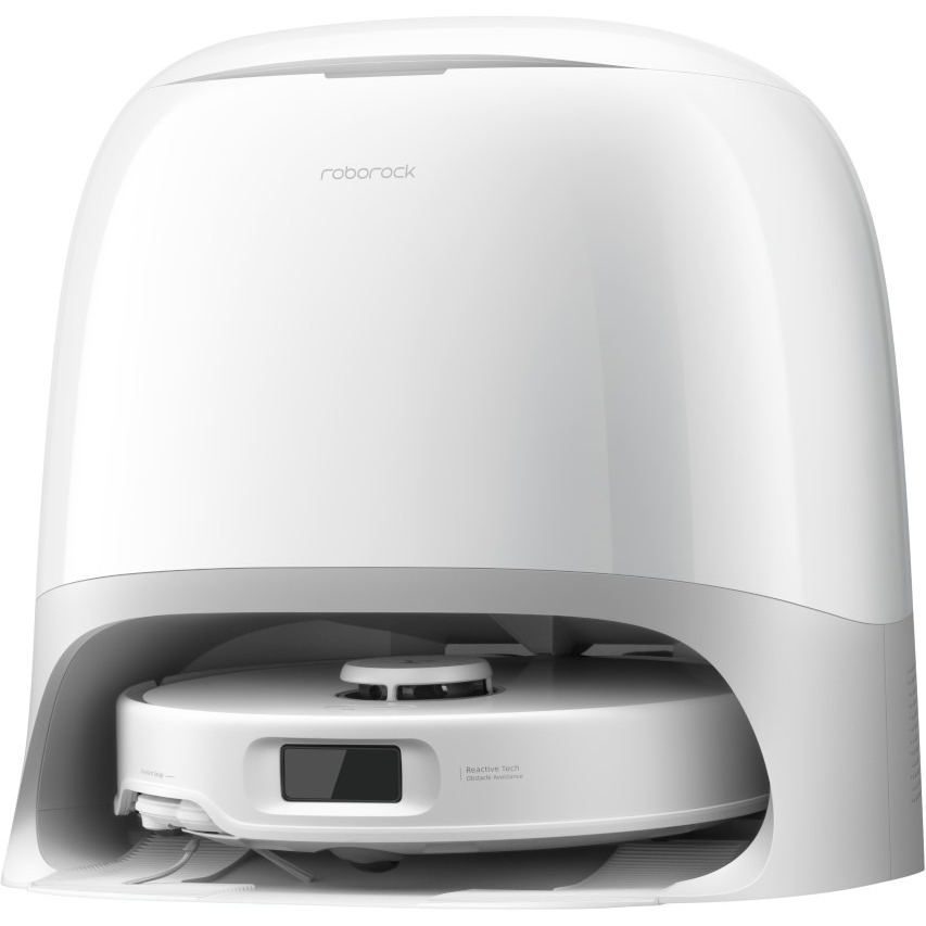 The dock self-empties the waste bin into a dust bag, adds water and removes dirty water from the robot vacuum, plus cleans and dries the roller with AI Adaptive hot water and hot air.